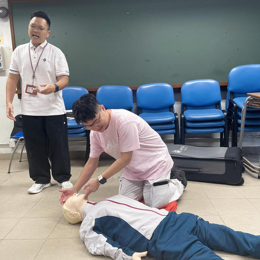 除了該局隊目親身教導外,還邀請了救護部門隊目來教導A E D使用方式及心肺復甦法。